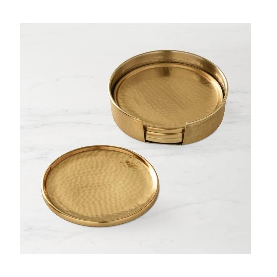 โรงงานผลิตแก้วน้ำชาหรือที่รองแก้วคุณภาพสูง ทำจากอะลูมิเนียมและทองเหลือง สีทองงาช้าง ดีไซน์ลายตอก