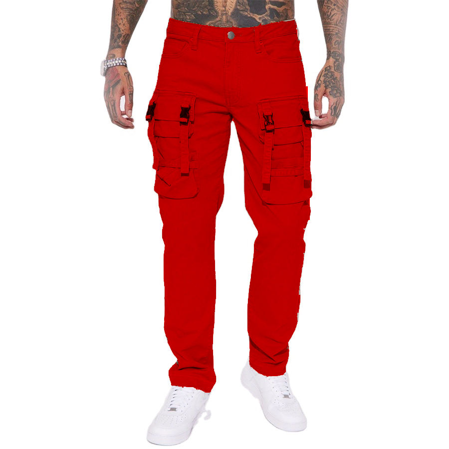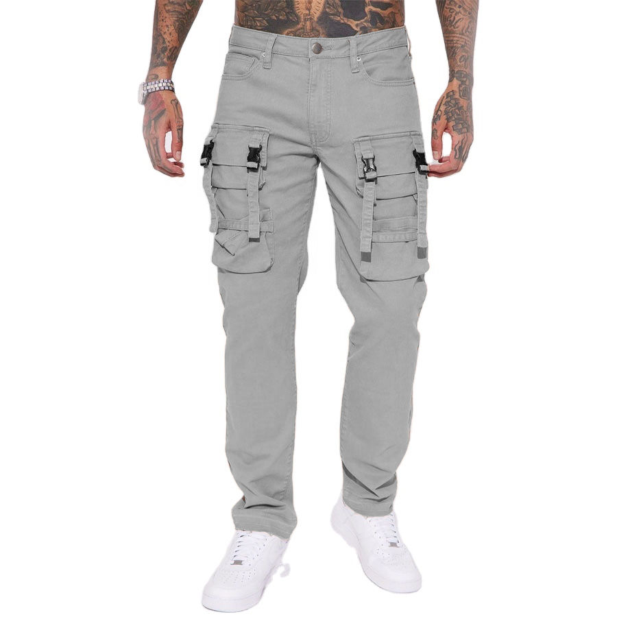 กางเกงยีนส์คาร์โก้ทรงหลวมเอวกลางสไตล์ลำลองสำหรับฤดูร้อนจากโรงงาน มีกระเป๋าหน้า 6 ช่อง และกระเป๋าหลัง 2 ช่องสำหรับผู้ชาย