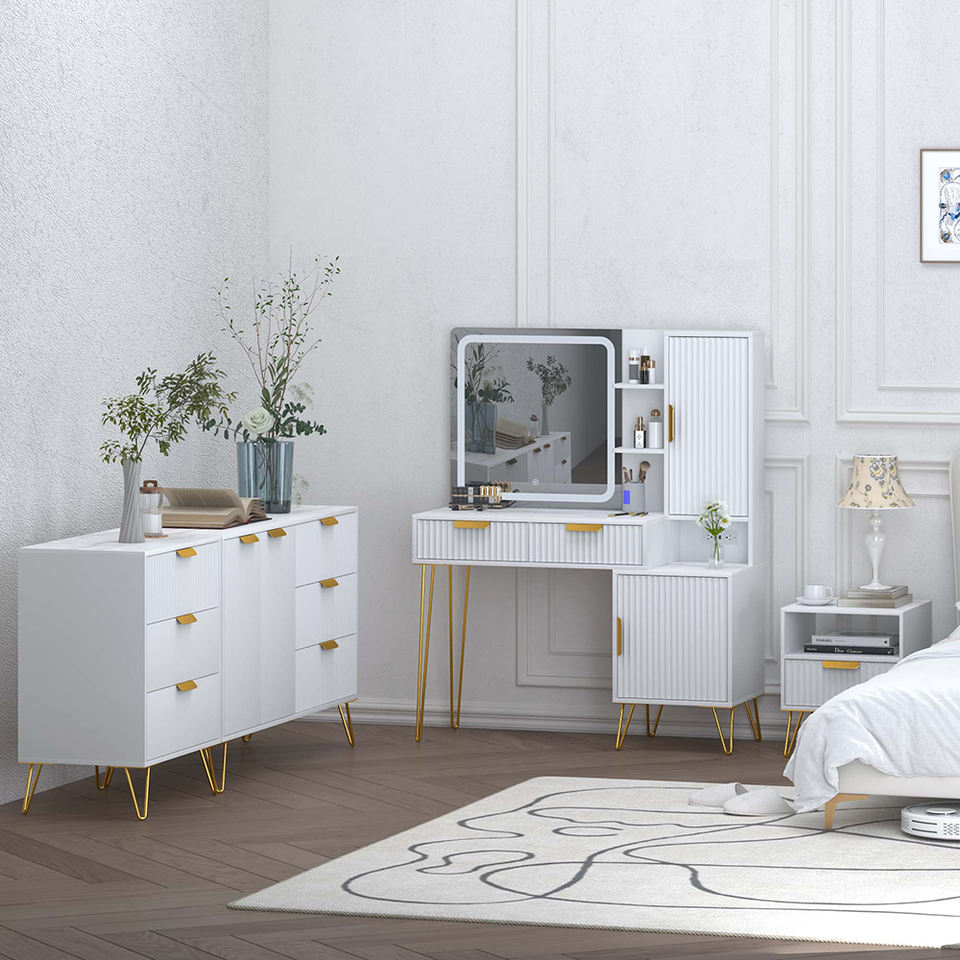 ชุดโต๊ะเครื่องแป้งสีขาวสำหรับเฟอร์นิเจอร์ห้องนอน4ชิ้นดีไซน์ใหม่