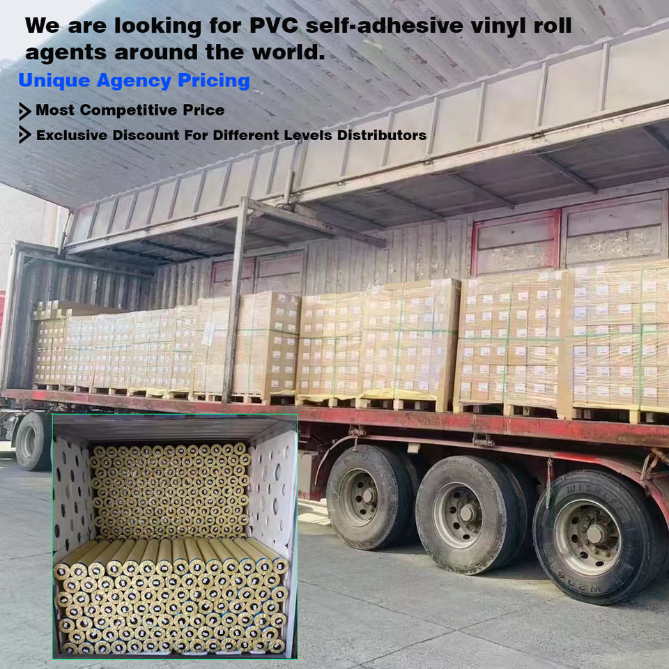 วอลล์เปเปอร์พีวีซีมีกาวในตัวม้วนไวนิลพิมพ์ได้สำหรับวัสดุโปสเตอร์พื้นผิวมันวาว/เคลือบวัสดุจากโรงงาน