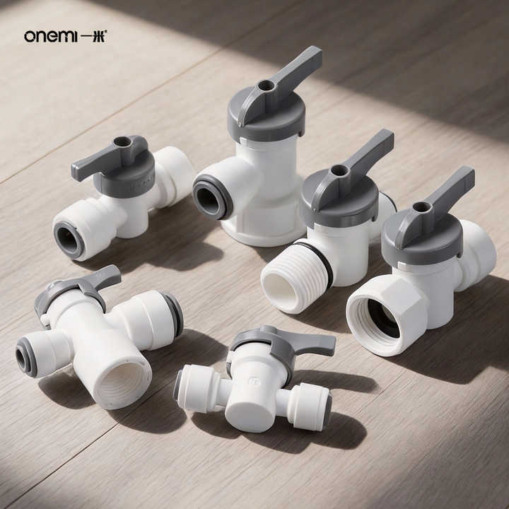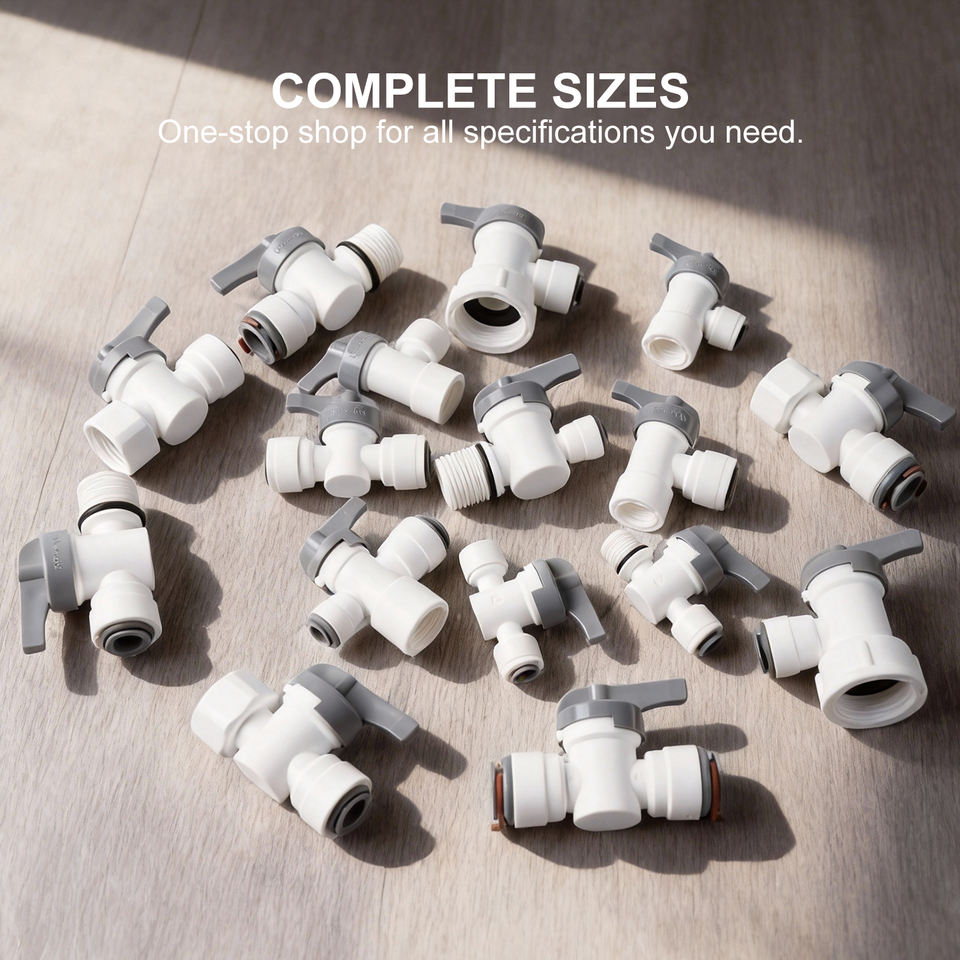 วาล์วบอลแบบเชื่อมต่อเร็วจากโรงงาน ขนาด 1/4 นิ้ว 3/8 นิ้ว 1/28 นิ้ว พร้อมสวิตช์ปิด-เปิดในตัว สำหรับเครื่องกรองน้ำ RO เครื่องชงกาแฟ และตู้เย็น