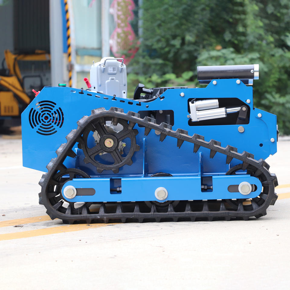 โรงงานจำหน่ายเครื่องตัดหญ้าแบบรีโมทคอนโทรล ใบมีดแบน เครื่องยนต์ EPA Euro5 ปรับความสูงได้ 1 ถึง 20 ซม. ระยะควบคุม 500 ม.