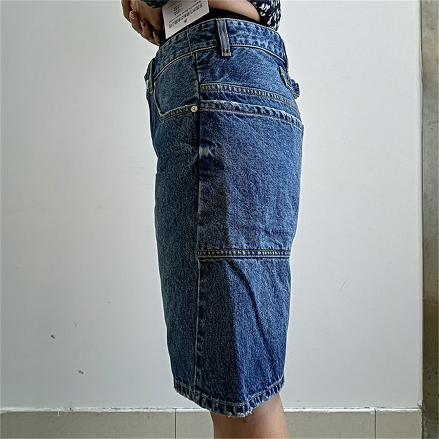 กางเกงขาสั้นผ้ายีนส์ย้อนยุคสำหรับผู้หญิงกางเกงขาสั้นวินเทจทรงหลวมลำลองฤดูร้อนมีสไตล์