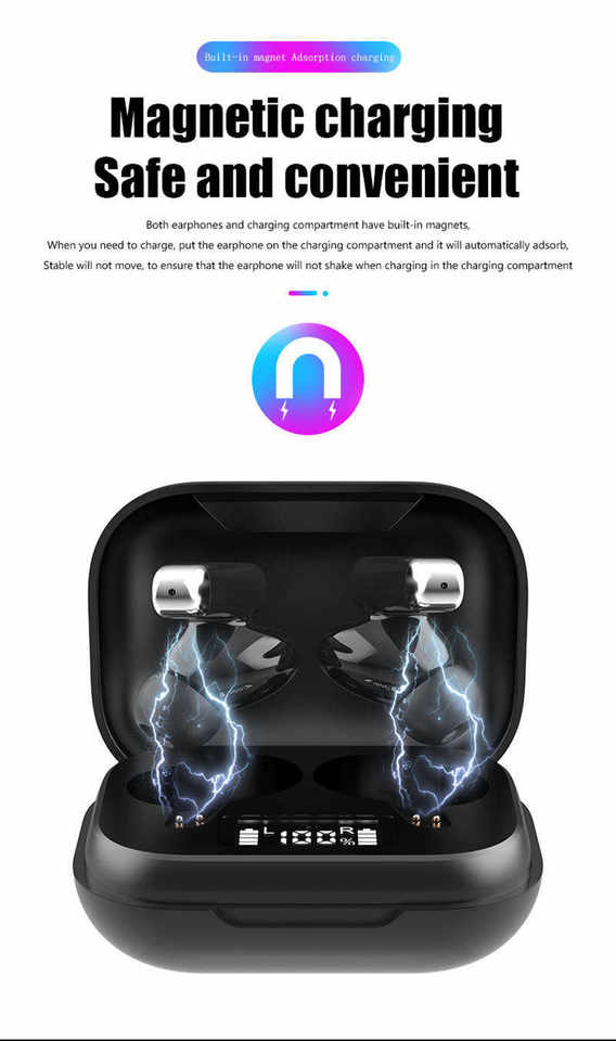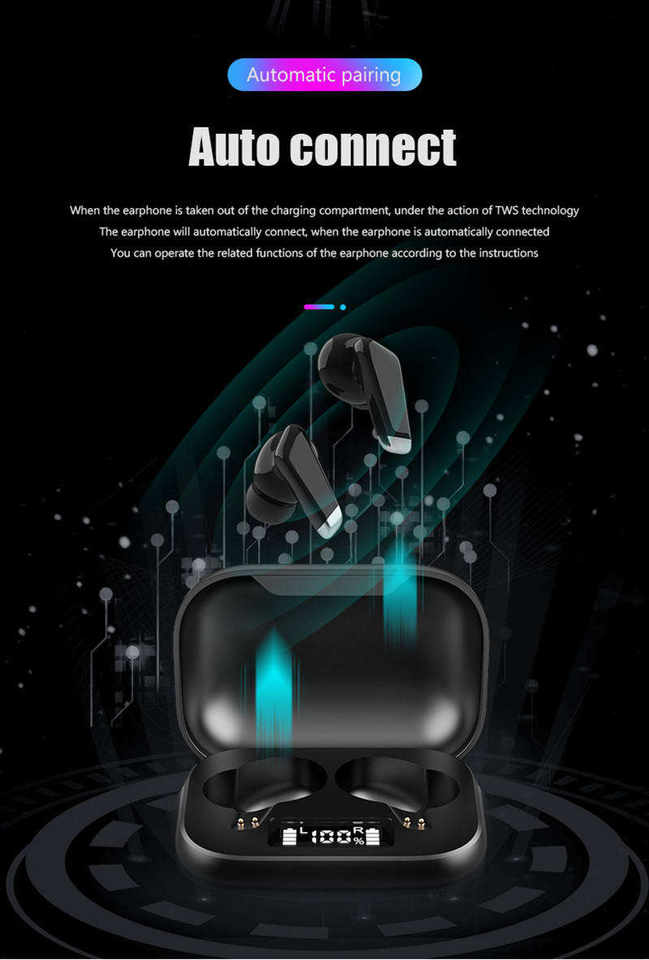 โรงงานจัดหาหูฟังไร้สาย LED แบบแฮนด์ฟรีขนาดเล็กในหูพร้อมกล่องชาร์จ หูฟังกีฬาคุณภาพเสียงสูง