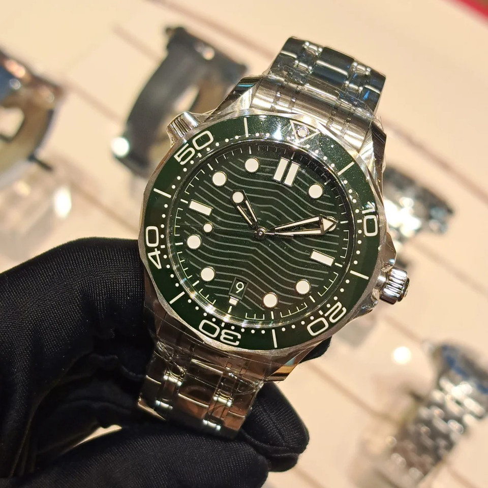 สายสแตนเลสสตีลรุ่นท็อปจากโรงงาน, หน้าปัดลายคลื่นเรืองแสง, กระจกคริสตัลแซฟไฟร์, นาฬิกาจักรกลอัตโนมัติ