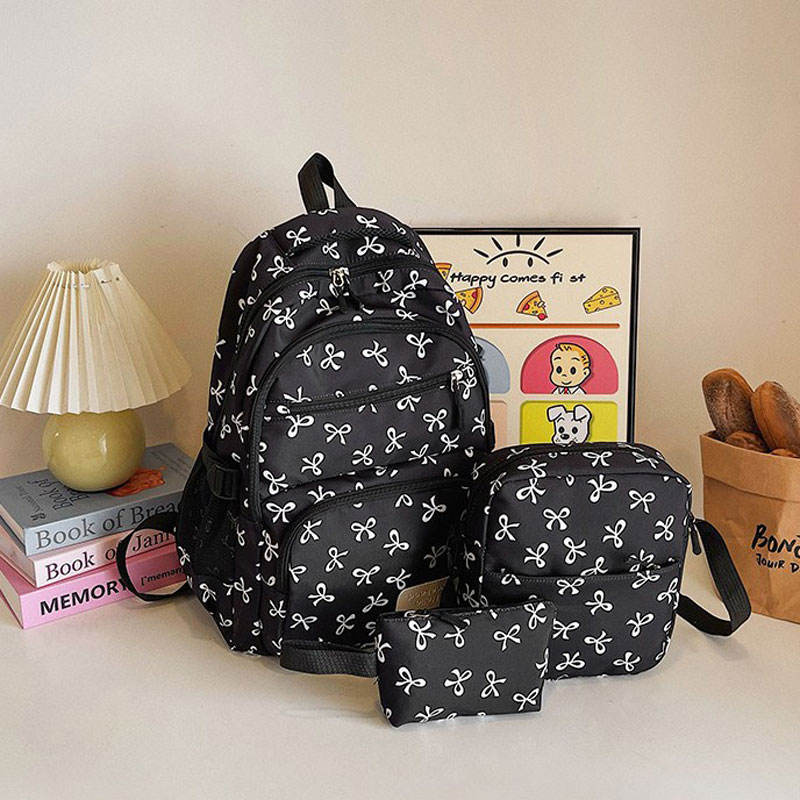 กระเป๋าเป้สะพายหลังแบบพกพาสำหรับผู้หญิงกระเป๋าเป้สะพายหลังพิมพ์ลายริบบิ้นแฟชั่นกระเป๋าเป้สะพายหลังลำลอง