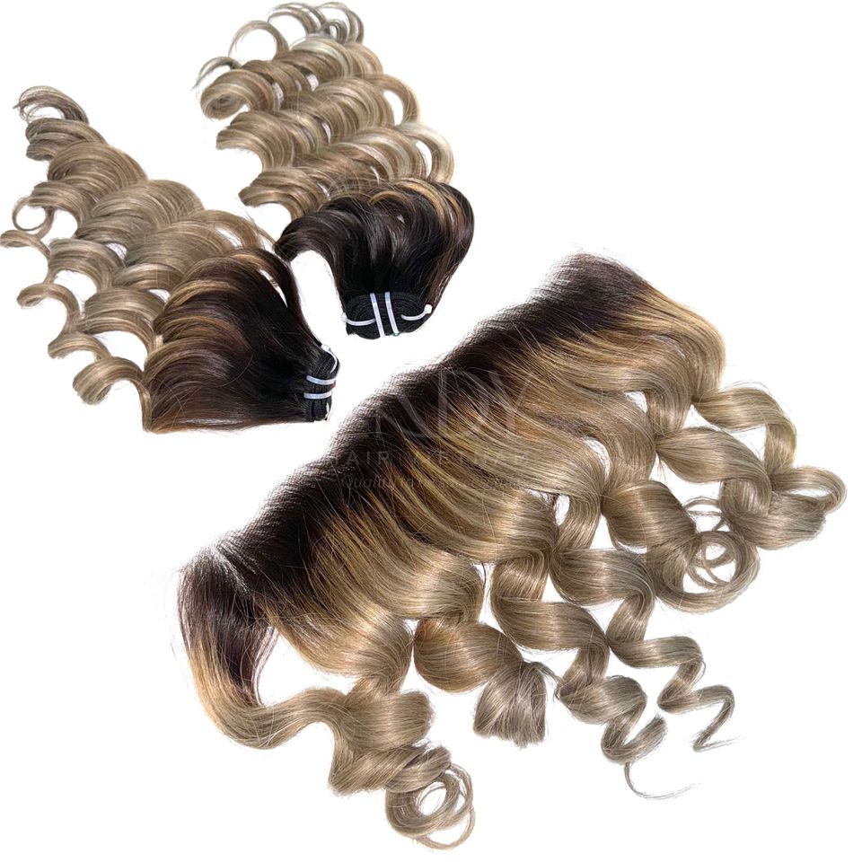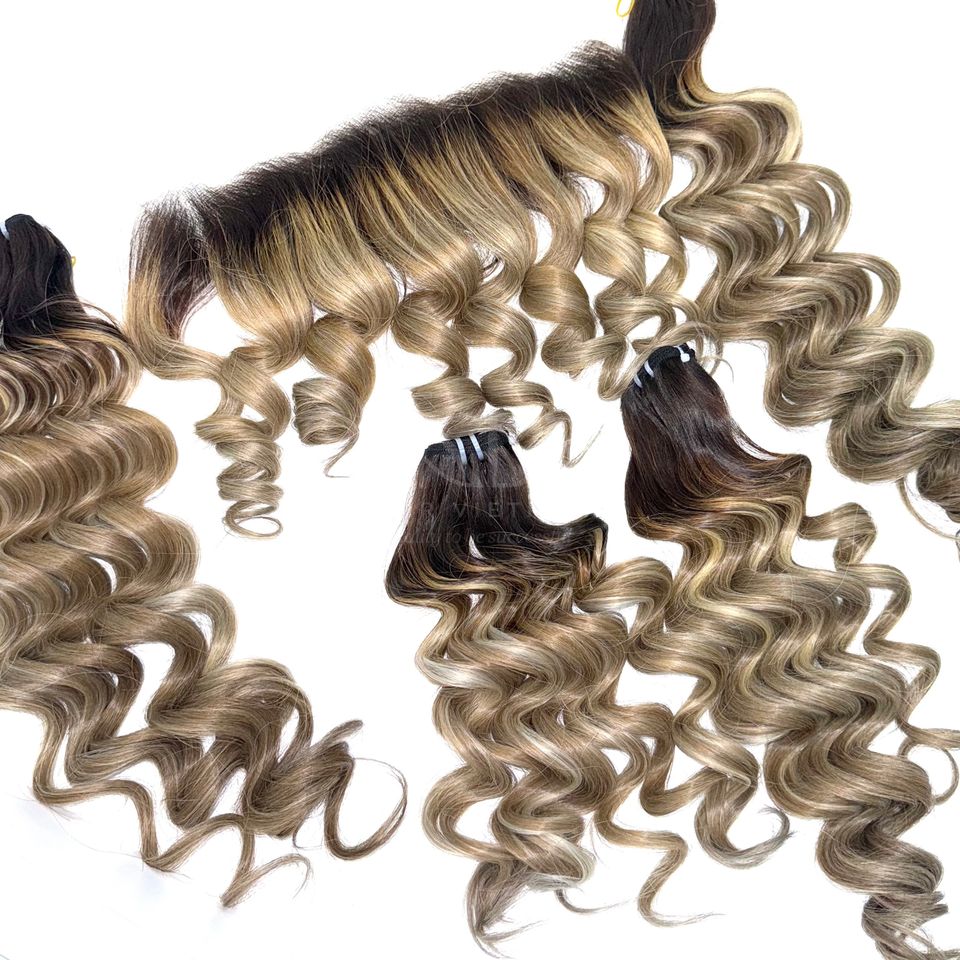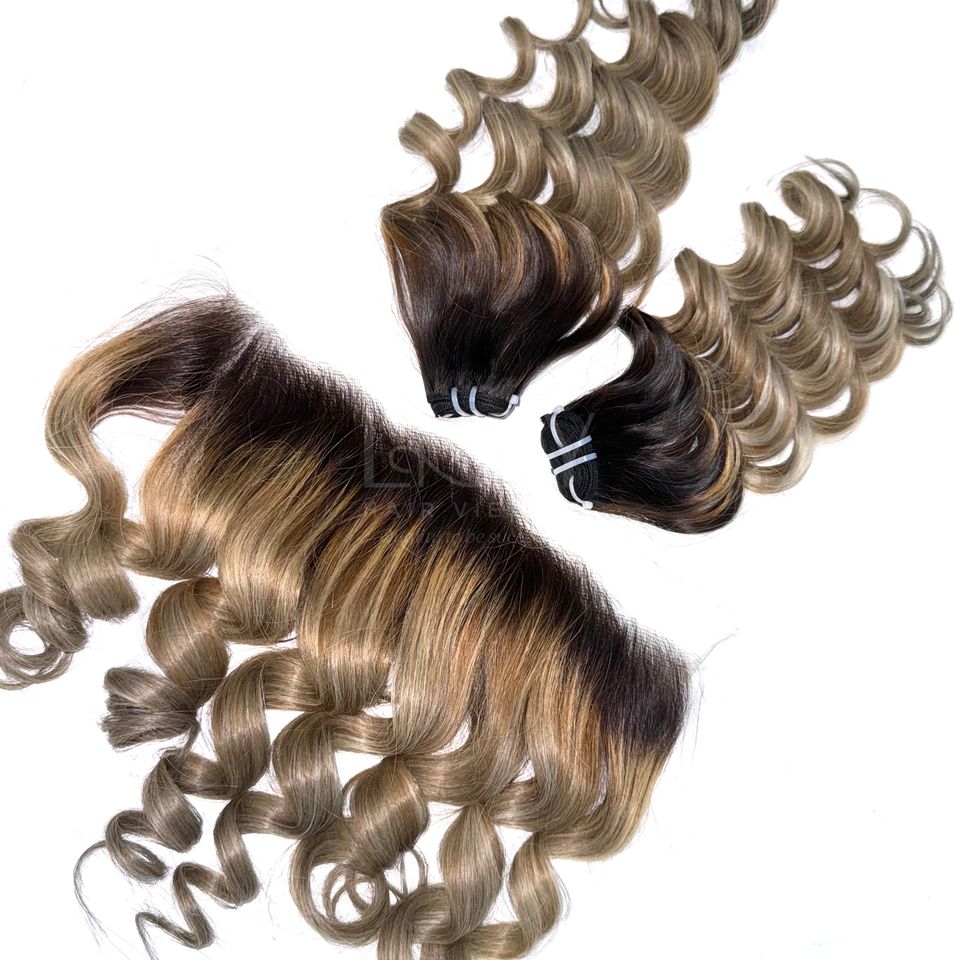 ผมดิบจาก100% แท้ผมเป็นลอนมีสีหยักศก