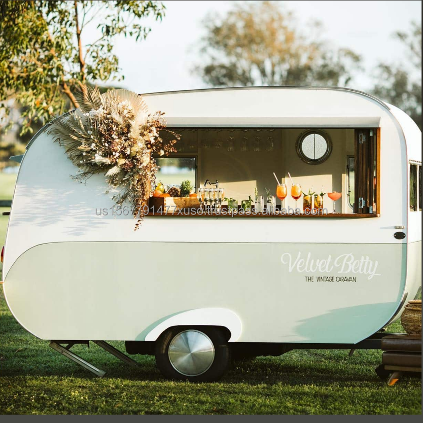 รถขายอาหารเคลื่อนที่สไตล์วินเทจสำหรับขายในยุโรป ใช้เป็นคีออสกาแฟ รถขายไอศกรีม ขนมขบเคี้ยว ฮอทดอก มันฝรั่งทอด เหมาะสำหรับการใช้งานเชิงพาณิชย์