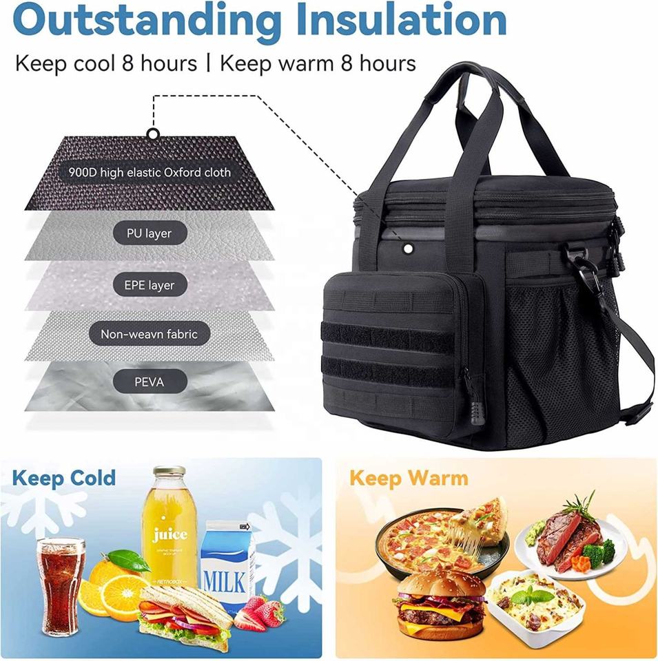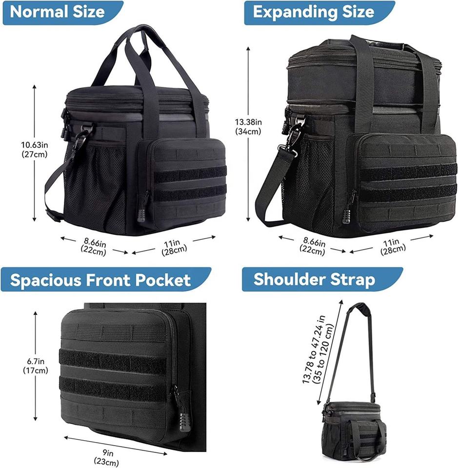 กระเป๋าเก็บความเย็นยุทธวิธีกันน้ำกล่องอาหารกลางวันหุ้มฉนวนขยายได้