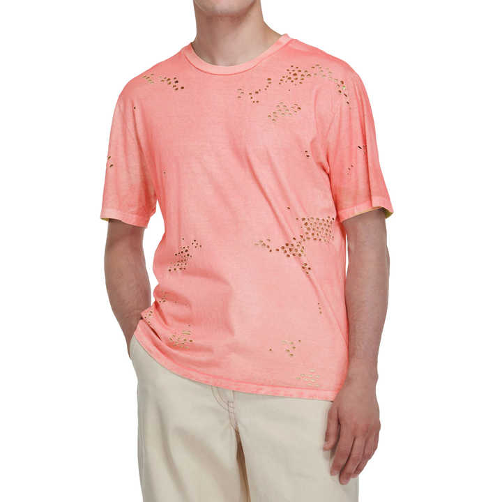 เสื้อยืดผู้ชายคอตตอน 100% ทรงดิสเทรส แขนครึ่ง คอกลม สีพื้น รับสกรีนโลโก้ ขายส่งจากโรงงาน