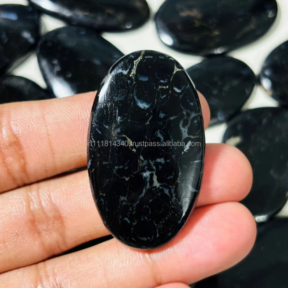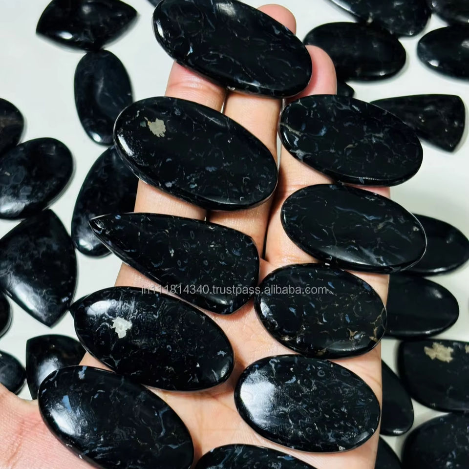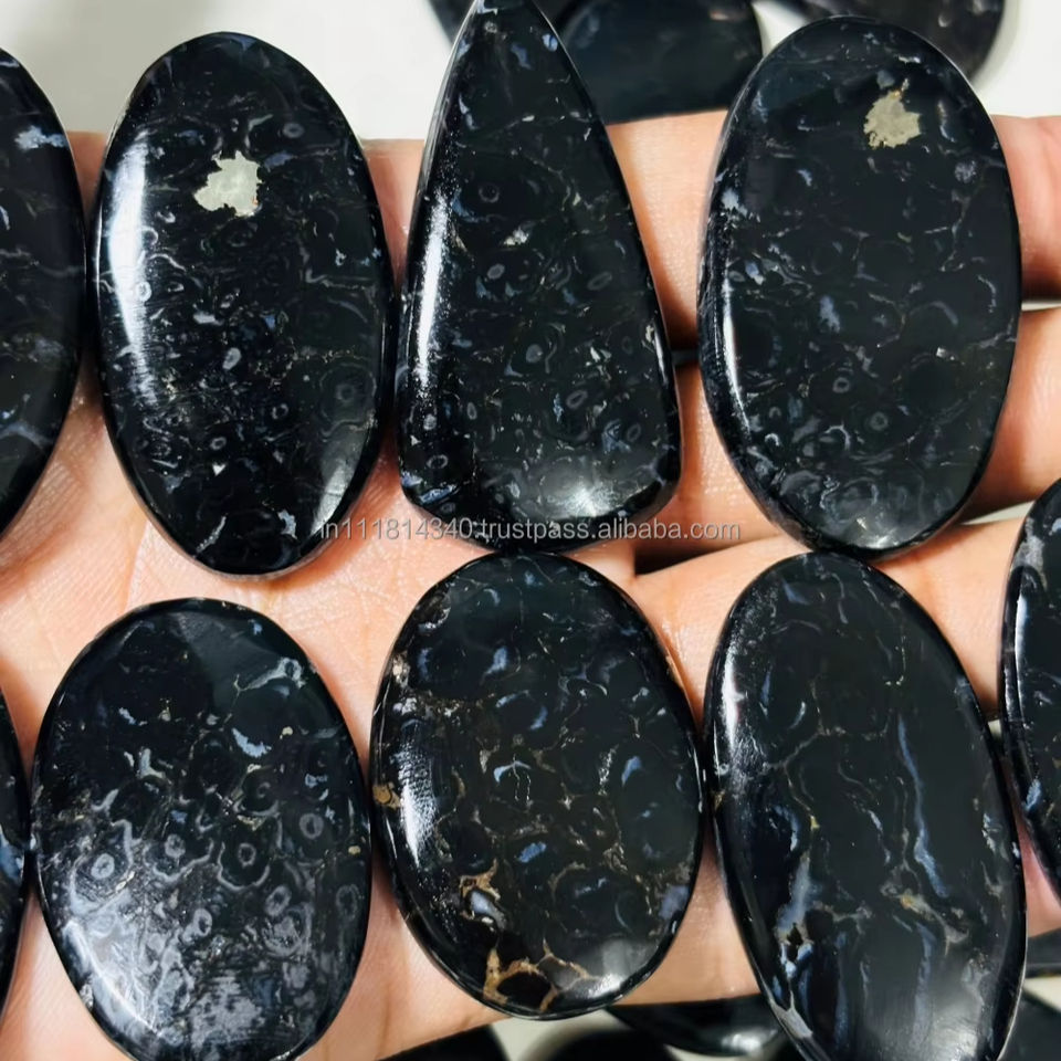 หินอาเกตรากปาล์มธรรมชาติสีดำ100% อัญมณีหลวมสำหรับทำเครื่องประดับขายส่งจากโรงงาน