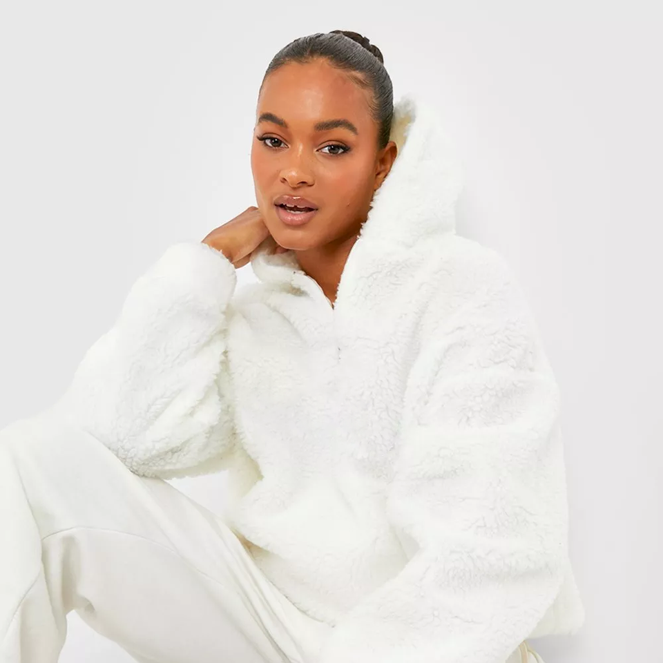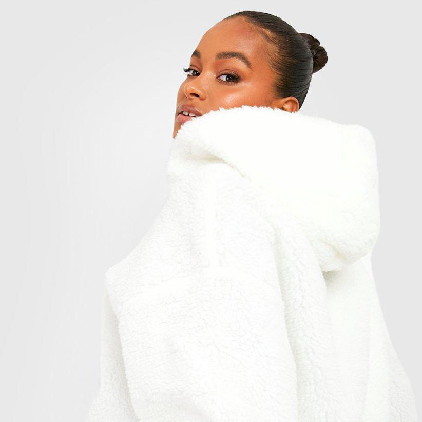 เสื้อฮู้ดดี้ผ้าฟลีซเท็ดดี้ทรงโอเวอร์ไซส์ แบบมีซิป 1-4 ช่อง