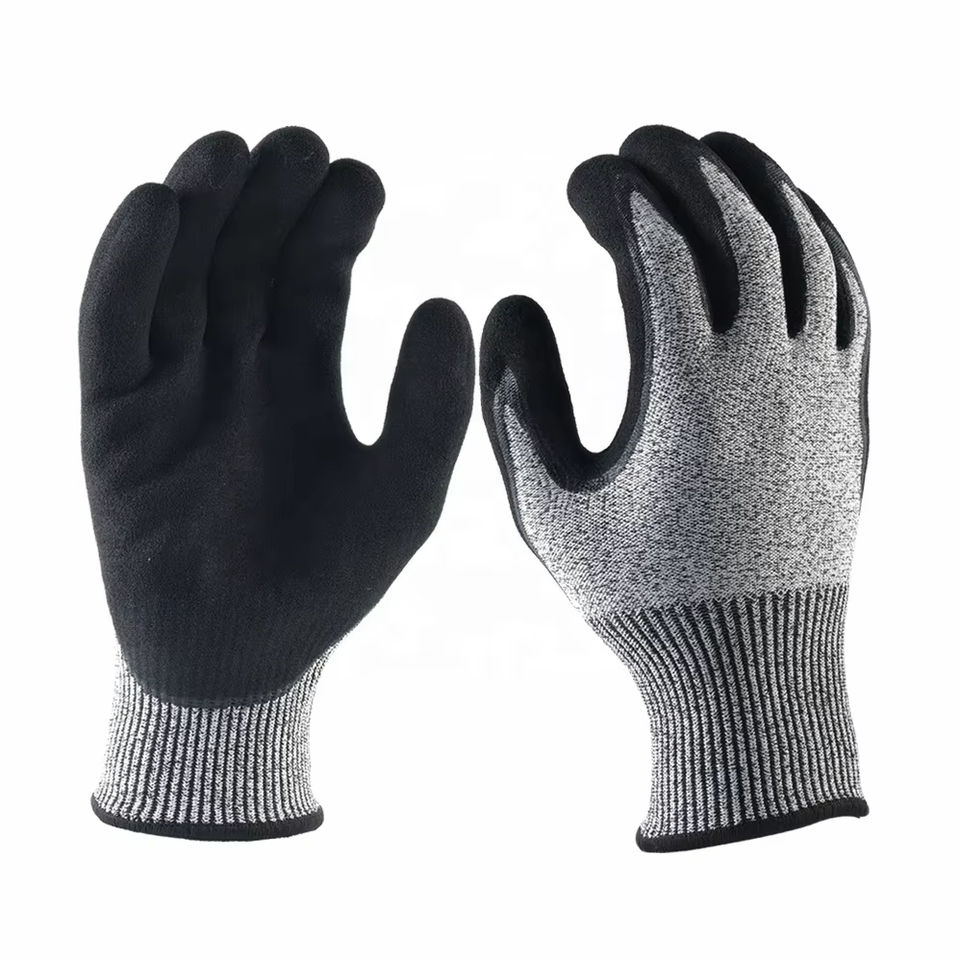 Factory Wholesale EN 388 Level 5 Safety Clothing 13G Cut Resistant Shell Nitrile Sandy Palm Coated Gloves