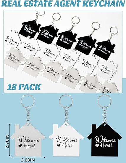 พวงกุญแจอะคริลิค18ชิ้นพวงกุญแจ DIY สีขาวใสสำหรับบ้านใหม่ของขวัญขึ้นบ้านใหม่