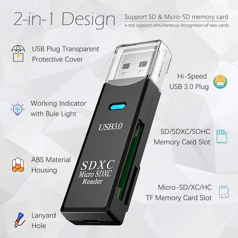 เครื่องอ่านการ์ดแบบ2-in-1 USB 3.0รองรับ SD/Mini SD/SSDMC/SDHC/MMC/RS-MMC/UHS-I สำหรับแล็ปท็อป PC