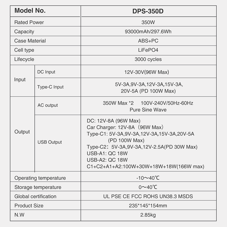 ความจุ:93000mAh/3.2V/297.6WH(15.5Ah/19.2V)