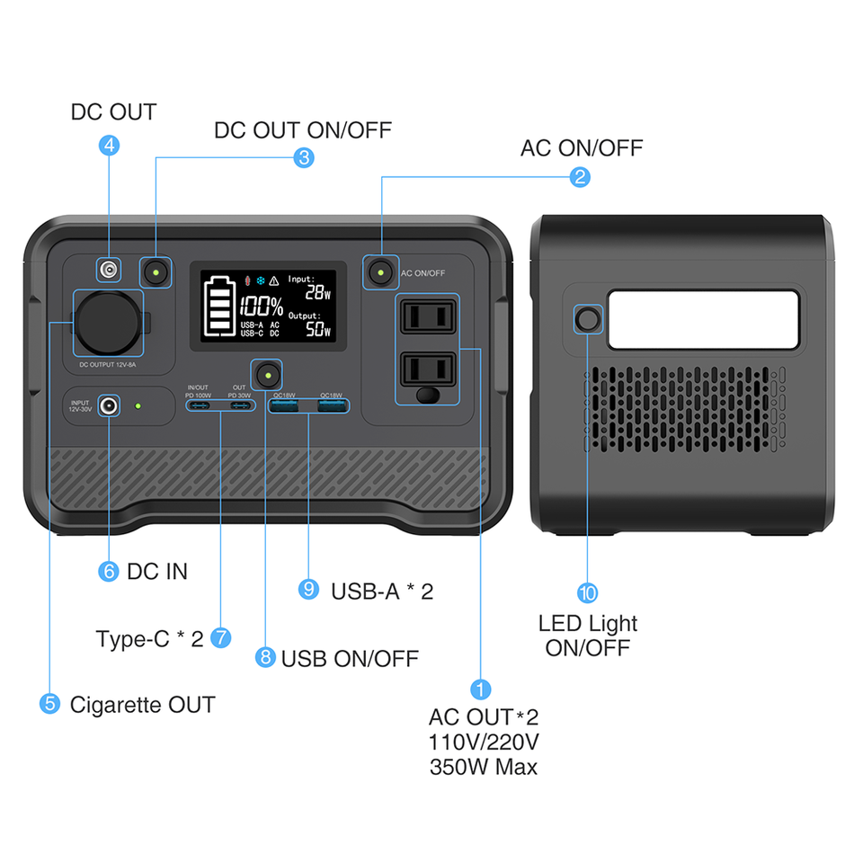 ชื่อสินค้า:โรงงานขายส่ง สถานีไฟฟ้าแบบพกพา 350W