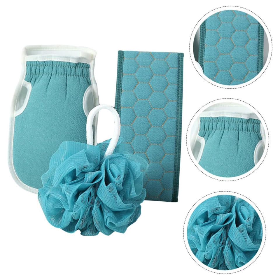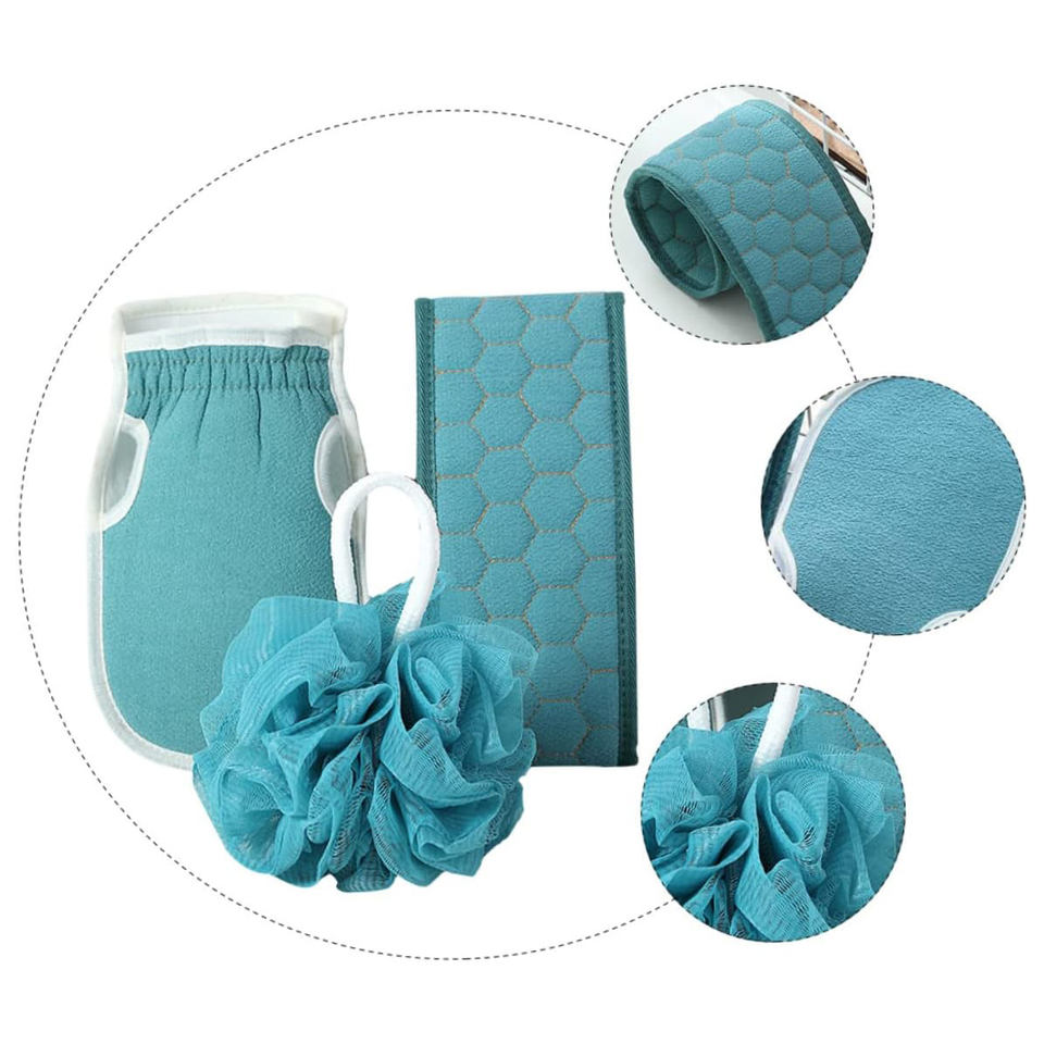 ชื่อผลิตภัณฑ์:ชุดผ้าขนหนูอาบน้ำทำความสะอาดผิว3ชิ้นลูกบอลอาบน้ำนุ่ม