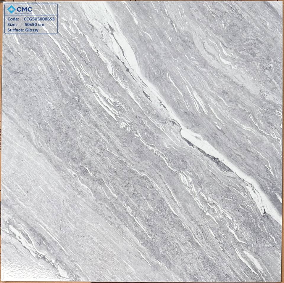 โรงงาน CMC ขายส่งกระเบื้องปูพื้นพอร์ซเลนเคลือบสีเทาขนาด 500x500 มม. ลายหินอ่อนขัดเงา ดีไซน์ชายฝั่ง เหมาะสำหรับห้องนั่งเล่นในอพาร์ทเมนต์