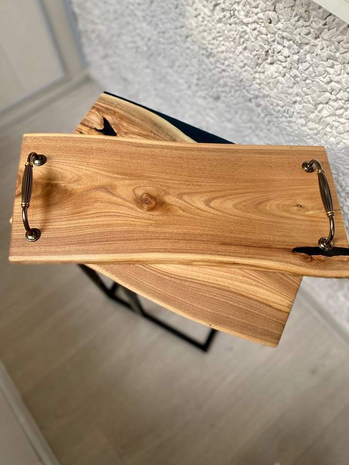 ถาดไม้อะคาเซียพร้อมถาดเสิร์ฟโลหะถาดไม้อะคาเซียเรซิ่นพร้อมถาดเสิร์ฟศิลปะทำจากเรซิ่นถาดอาหาร