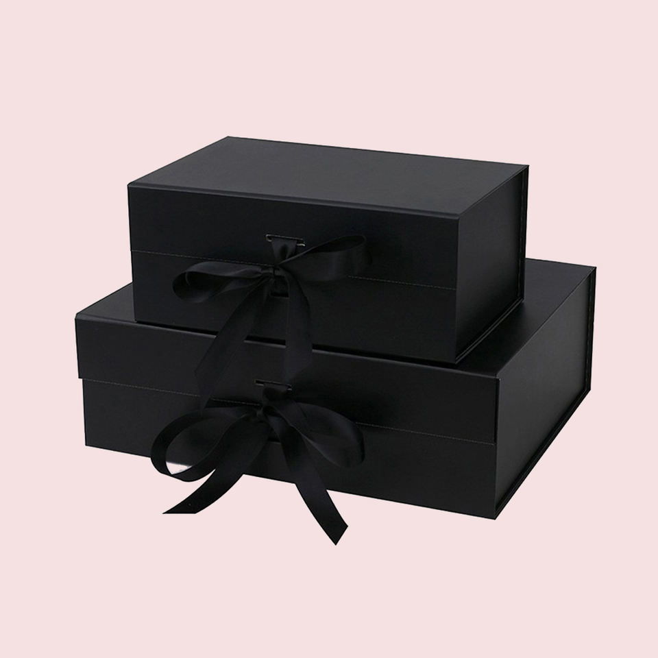 กล่องของขวัญแม่เหล็กสีดำแบบพับได้สำหรับเสื้อผ้า รองเท้า เครื่องสำอาง ขายส่งจากโรงงาน บรรจุภัณฑ์หรูหรา