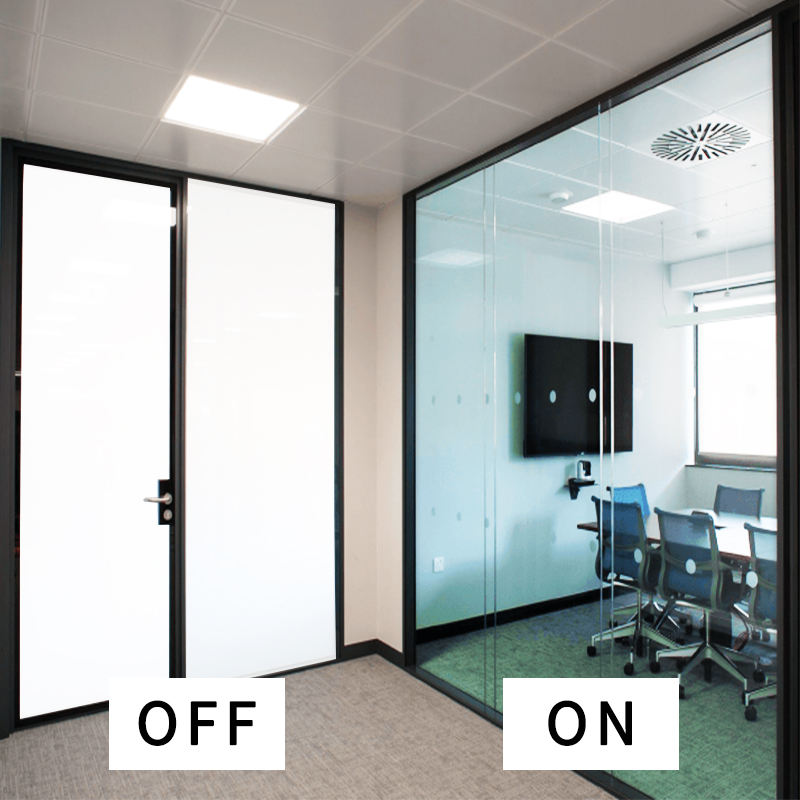 หน้าต่างสีดำทรอนิกสมาร์ทสีไฟฟ้าแก้วสีฟ้าควบคุมพีวีซี Pdlc ฟิล์มกาวตนเองบรรจุ: