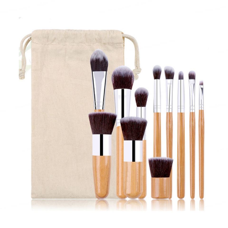ชุดแปรงแต่งหน้าคุณภาพพรีเมียมจากไม้ไผ่ สำหรับใบหน้าและอายไลเนอร์ 11 ชิ้น พร้อมขนแปรงสังเคราะห์ ขายส่งจากโรงงาน