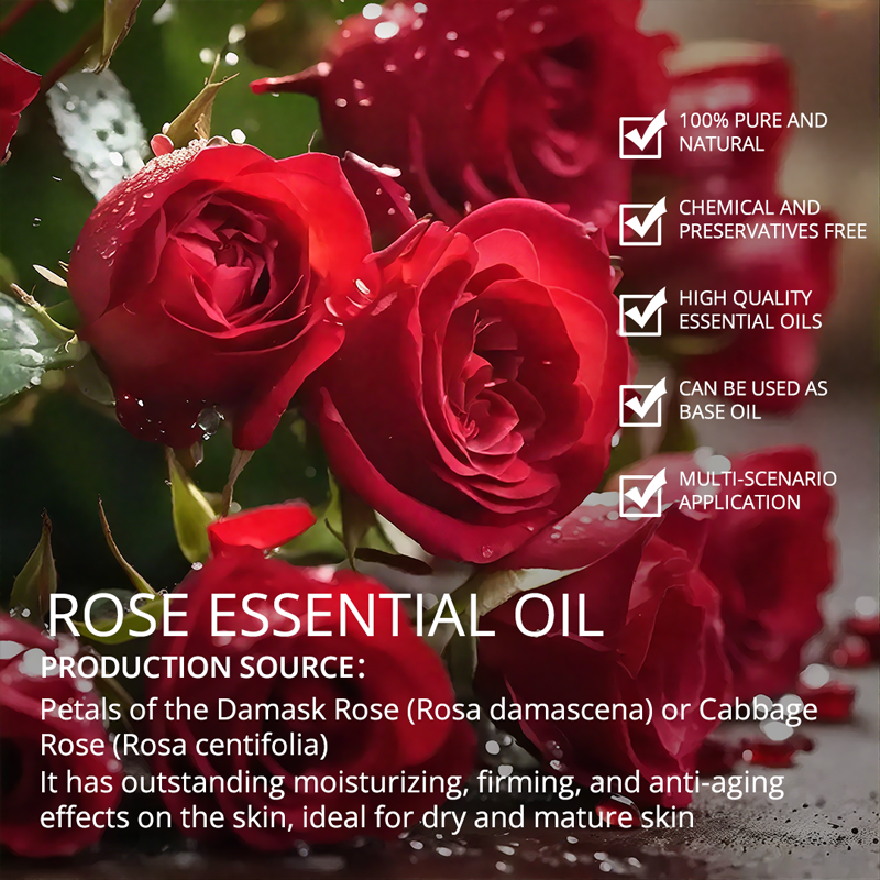 น้ำมันดอกกุหลาบออร์แกนิกบริสุทธิ์สำหรับใบหน้าน้ำมันหอมระเหยกลิ่นกุหลาบธรรมชาติเกรดเครื่องสำอาง