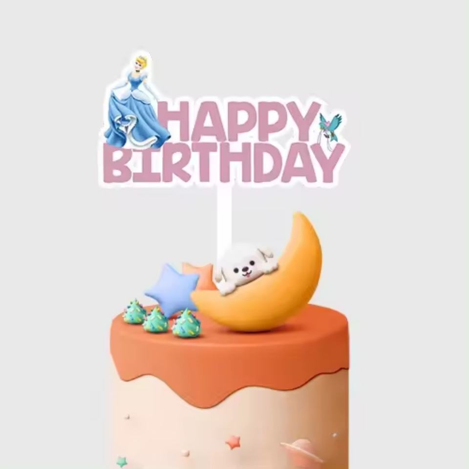 ขายส่งจากโรงงาน ชุดตกแต่งเค้กอะคริลิคสำหรับงานวันเกิดเด็กผู้หญิงลายการ์ตูนเจ้าหญิง