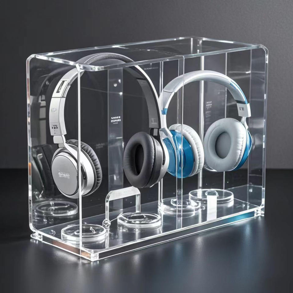Factory Wholesale Clear Acrylic Headphones Stand Display Box Dust Cover Clamshell Show Case for Headphones Coffee Tables