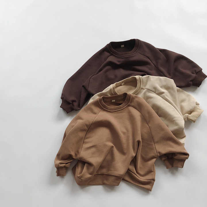 เสื้อฮู้ดดี้คอกลมแบบเรียบ 5 สี ชุดเสื้อครอปสำหรับเด็ก ขายส่งจากโรงงาน เสื้อสเวตเชิ้ตสีน้ำตาลสำหรับเด็กแบบสั่งทำ