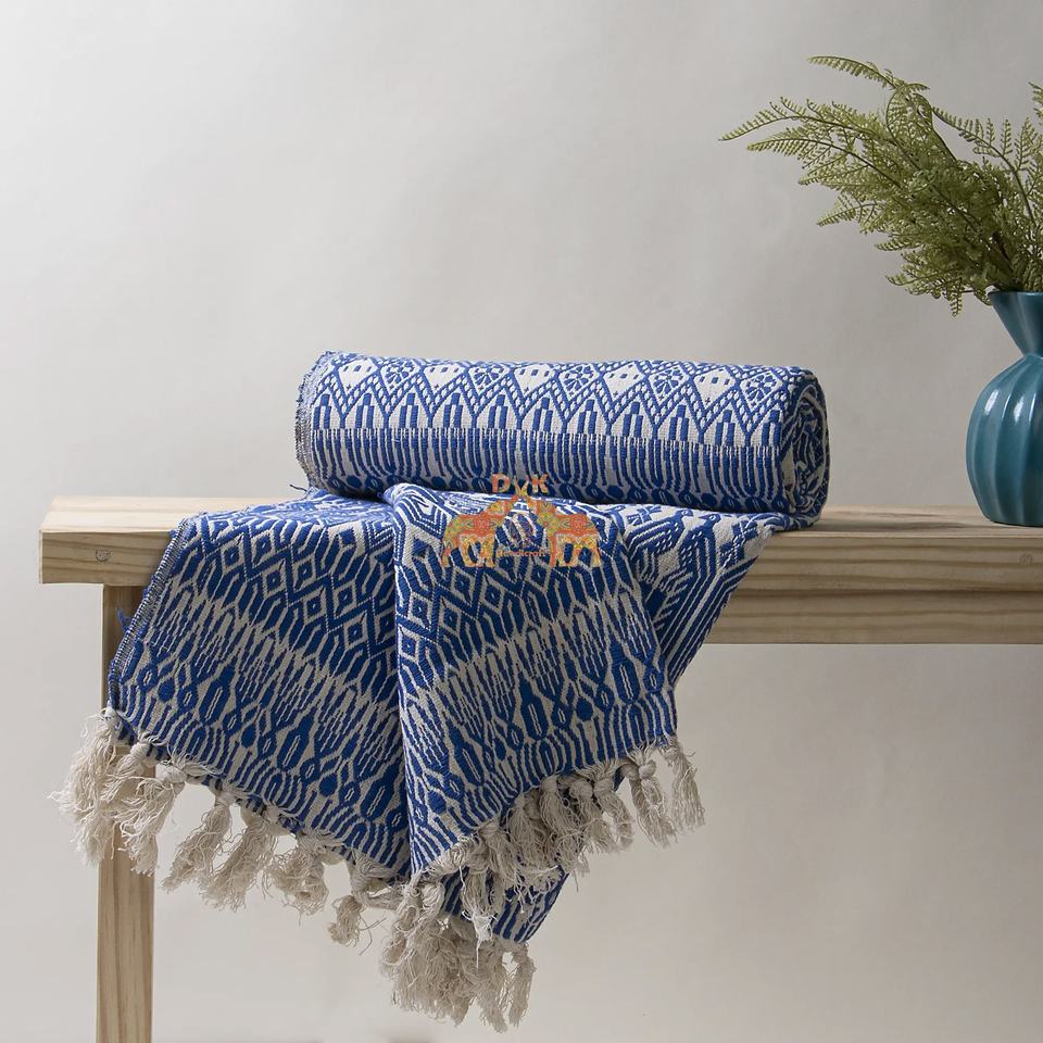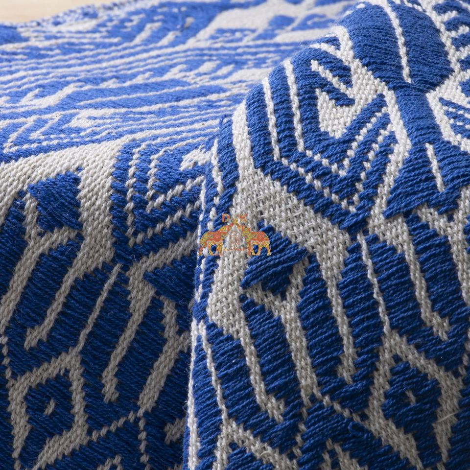 ผ้าห่มทำมือสำหรับตกแต่งผ้าฝ้าย,ผ้าทอสีฟ้าเตียงเดี่ยวเก้าอี้อินเดียผ้าคลุมโซฟา