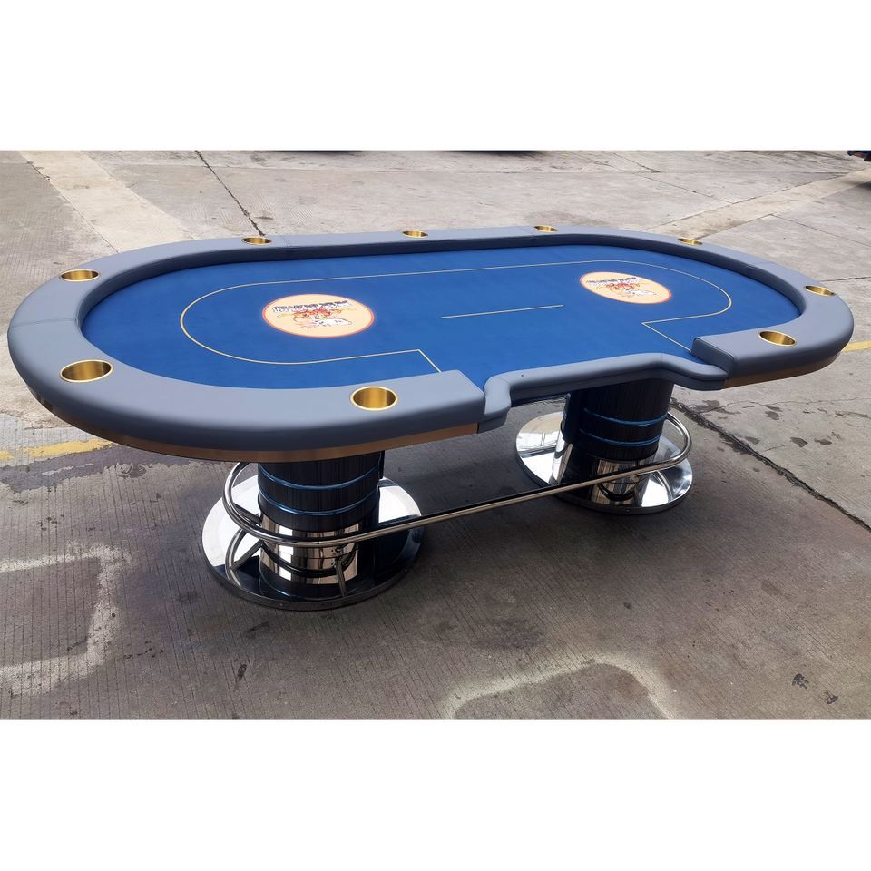 โต๊ะโป๊กเกอร์แบบกำหนดเองสำหรับ 6 ถึง 10 คน พร้อมไฟ LED สำหรับเกมคาสิโน ขายส่งจากโรงงาน พร้อมที่วางแก้วในตัว