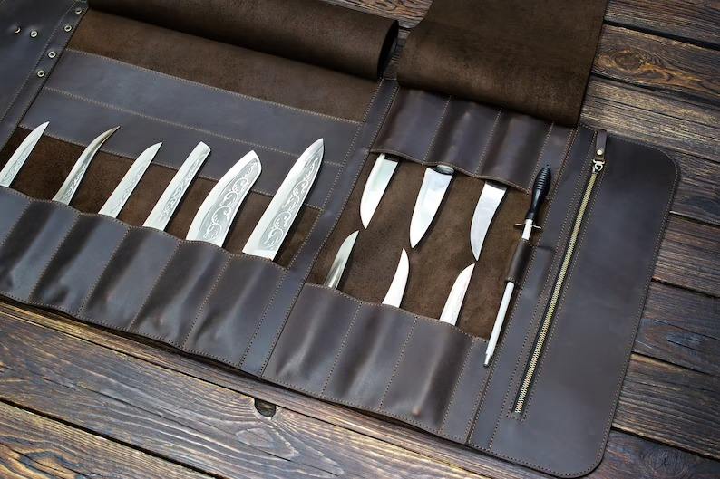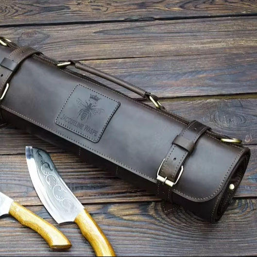 กระเป๋าหนังวัวแท้แบบม้วนสำหรับใส่มีดเชฟ ผลิตตามสั่ง ขายส่งจากโรงงาน สำหรับเก็บเครื่องมือผู้ชาย รองรับ OEM รุ่น LKR-0353