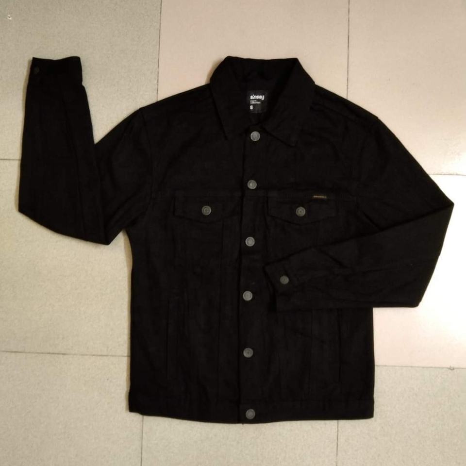 แจ็กเก็ตผ้าเดนิมสำหรับผู้ชายสีดำผ้าฝ้าย100% ระบายอากาศได้ดีสำหรับฤดูใบไม้ผลิผลิตตามสั่ง