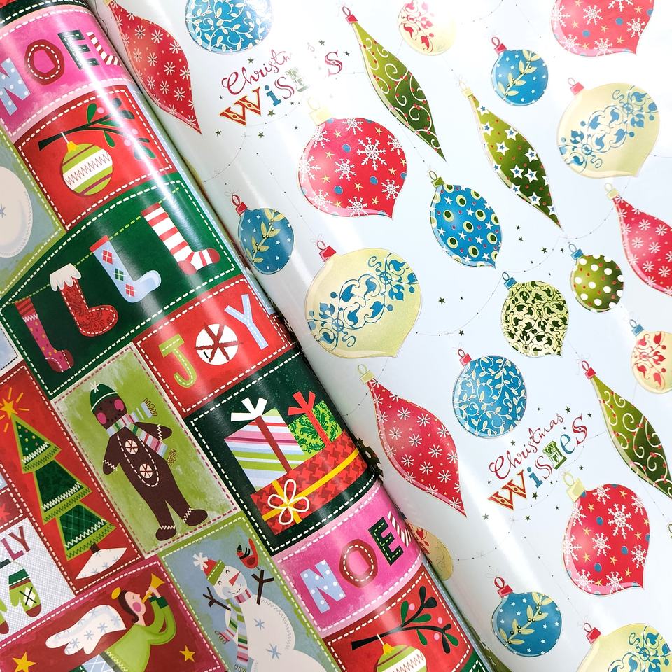 กระดาษห่อของขวัญคริสต์มาสแบบม้วนกระดาษห่อสองด้านแบบใช้แล้วทิ้งและรีไซเคิลได้