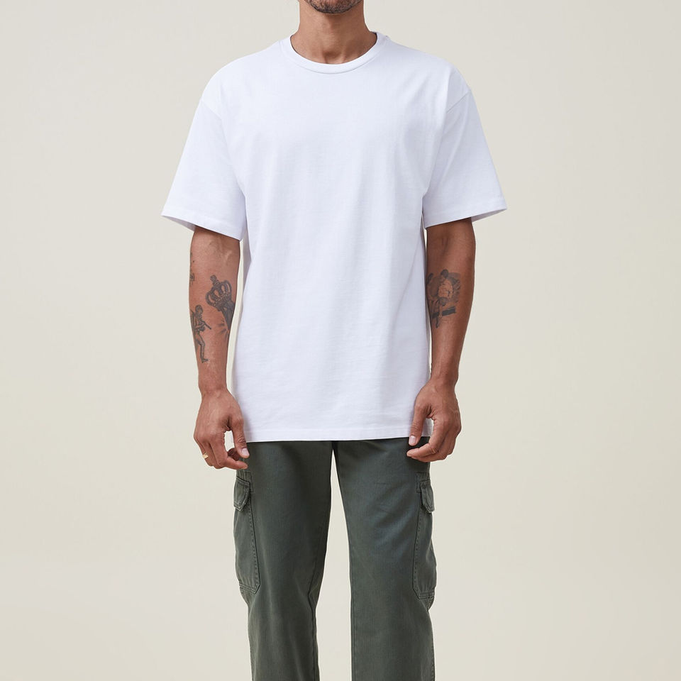 เสื้อยืดคอกลมผู้ชายทรงโอเวอร์ไซส์ ผ้าฝ้าย 100% แห้งเร็ว ไม่ยับ สั่งผลิตได้ ขายส่งจากโรงงาน สีขาว/ดำ