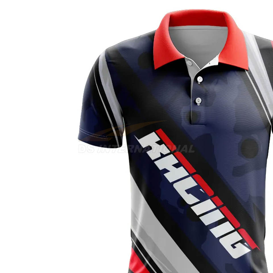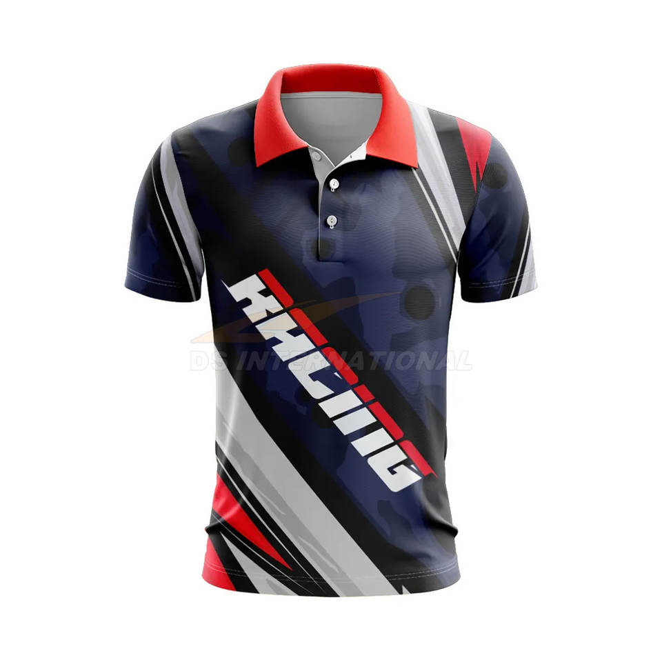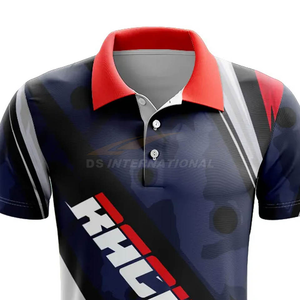 เสื้อโปโลแบบระเหิดสำหรับทีมกอล์ฟโพลีเอสเตอร์แห้งเร็วเสื้อโปโลแบบสั่งทำโลโก้ได้ตามต้องการ