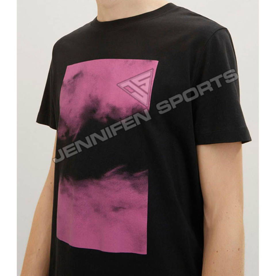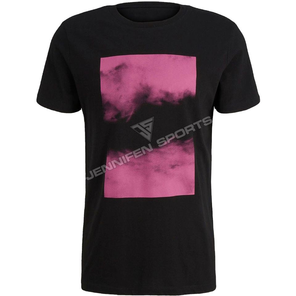 ผ้าเจอร์ซีย์ผ้าฝ้าย100% เสื้อยืดคอกลมย้อมสีแบบกำหนดเองพร้อมฉลากคอในตัว