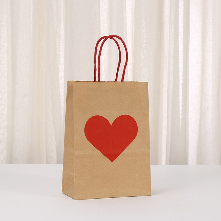 ถุงของขวัญวาเลนไทน์แบบกำหนดเองขายส่งจากโรงงาน ถุงบรรจุภัณฑ์ของขวัญรูปหัวใจ ถุงใส่ขนม ถุงกระดาษคราฟท์มีหูหิ้ว
