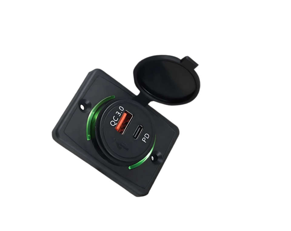 โรงงานขายส่งปลั๊กชาร์จในรถยนต์แบบกันน้ำ 12V 24V รุ่น A7 สีดำ วัสดุ PC ทนไฟ ได้รับมาตรฐาน CE/FCC
