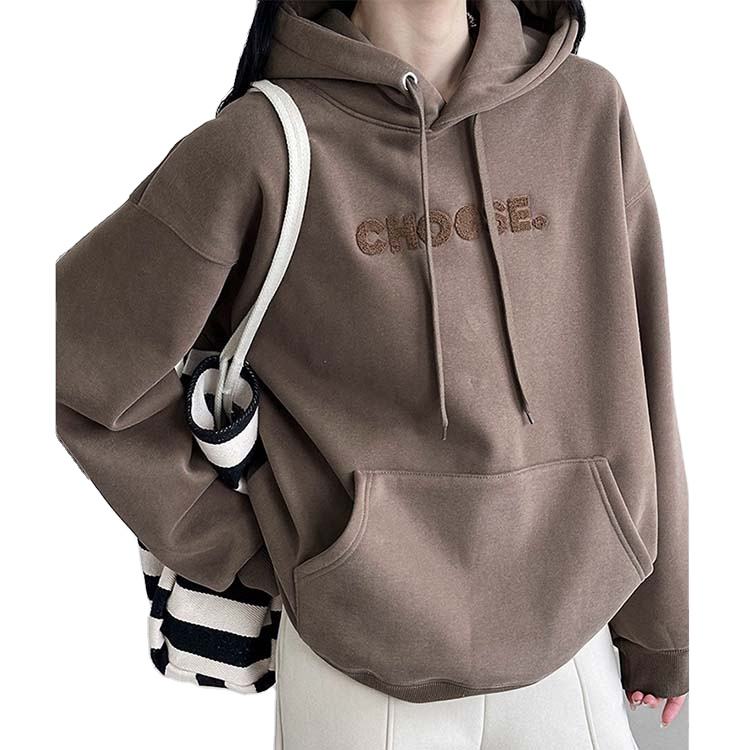 เสื้อฮู้ดสวมหัวโอเวอร์ไซส์ของผู้หญิงเสื้อกันหนาวมีขนาด XS โลโก้ปักโลโก้