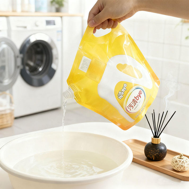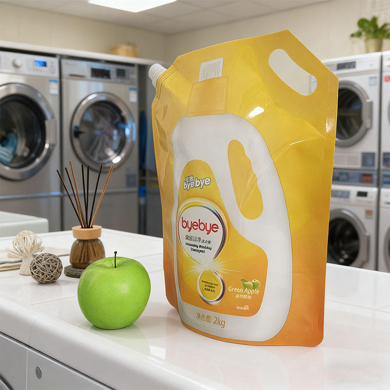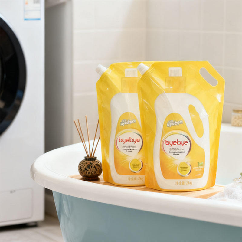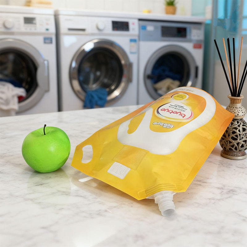 ถุงพลาสติก PE แบบมีพวยกาพิมพ์ลายกราเวียร์ ผลิตตามสั่ง ขายส่งจากโรงงาน ป้องกันการรั่วซึม รีไซเคิลได้ สำหรับผลิตภัณฑ์ดูแลส่วนบุคคล น้ำยาซักผ้าหอม
