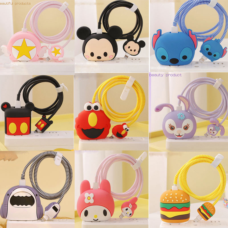 หัวชาร์จและสายป้องกัน USB น่ารักสายการ์ตูนข้อมูลการชาร์จ