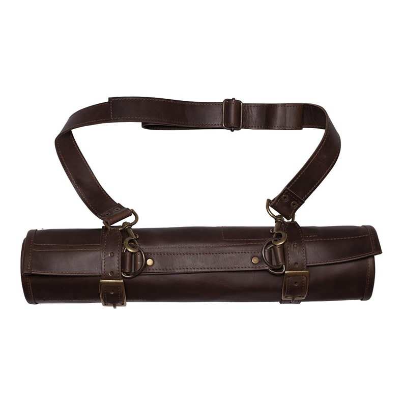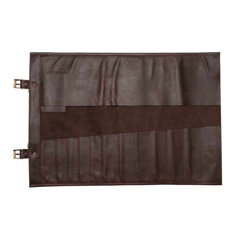Factory Wholesale Durable OEM Custom Brown Genuine Leather Lightweight Portable Chef Knife Roll Bag for Men's Storage LKR-0343
