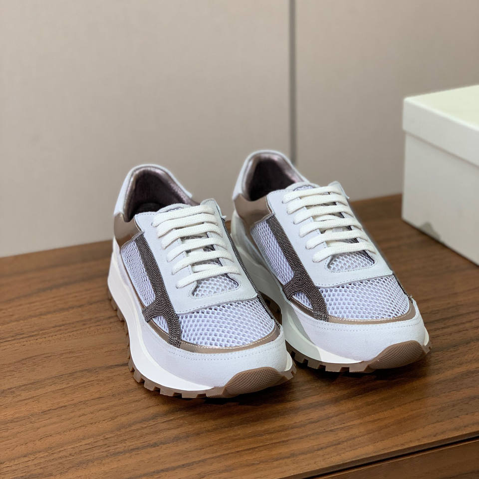 รองเท้ากีฬาลำลองผู้หญิงแบบสวมสบาย ดีไซน์หรูหราประดับลูกปัด หนังกลับและผ้าตาข่าย รุ่นใหม่ต้นฤดูใบไม้ผลิ ขายส่งจากโรงงาน พื้นหนา เหมาะสำหรับเดิน