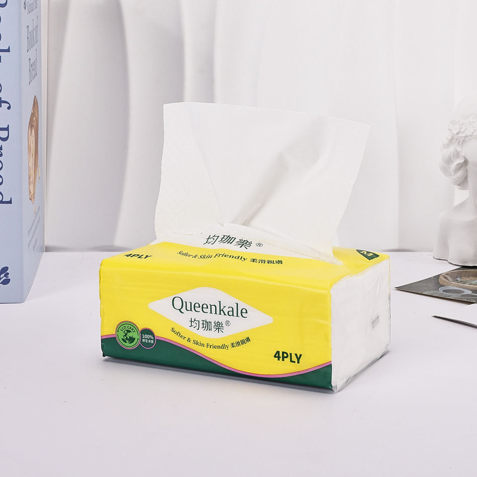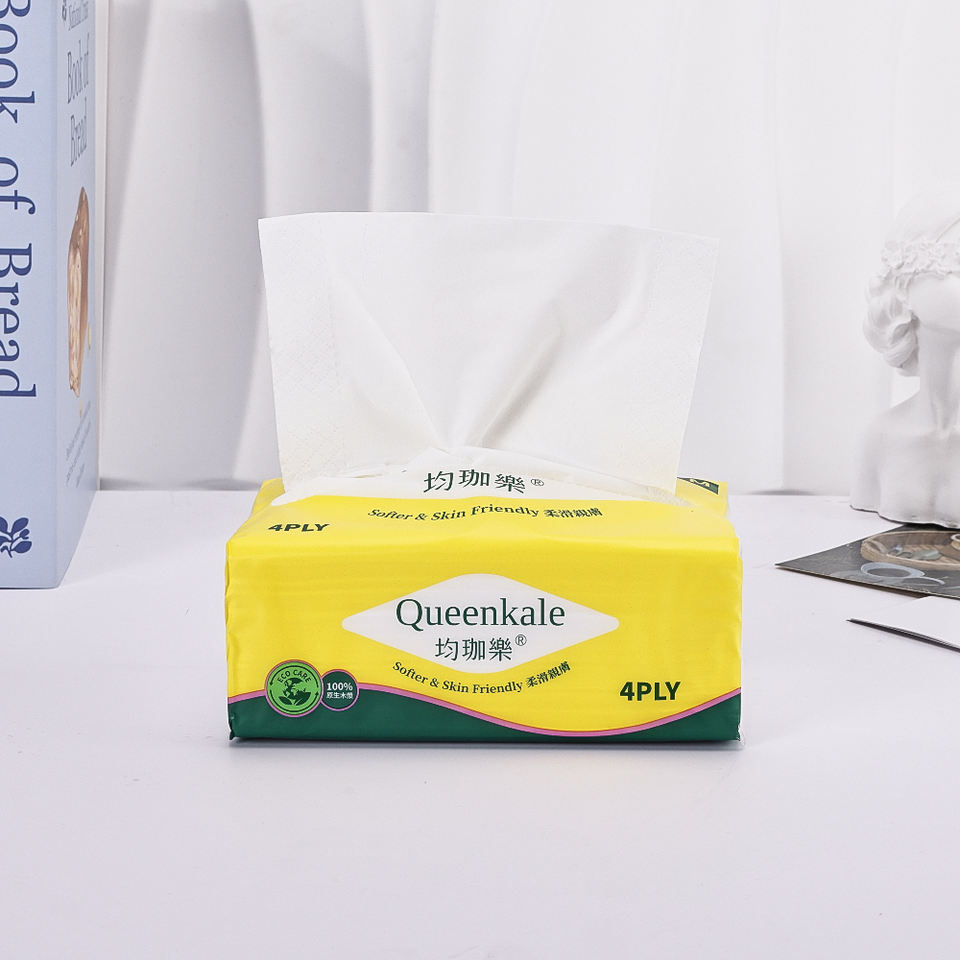 กระดาษเช็ดหน้าแบบนุ่ม 4 ชั้น เป็นมิตรกับสิ่งแวดล้อม ขายส่งจากโรงงาน สำหรับใช้ในสำนักงาน/โรงแรม พร้อมตัวอย่างฟรี