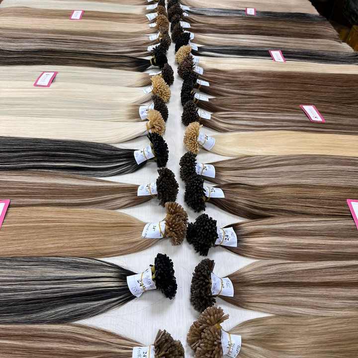 ผมต่อแนวเส้นผมมนุษย์ติดหนังกำพร้าเกรด I-Tips