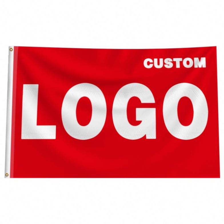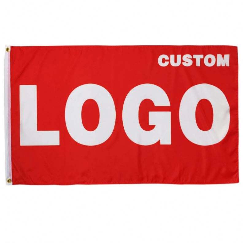 ธงโพลีเอสเตอร์พิมพ์ลายดิจิทัลคุณภาพดีราคาโรงงานขายส่ง ราคาถูก เป็นมิตรกับสิ่งแวดล้อม สำหรับกิจกรรมกลางแจ้ง พร้อมโลโก้สีแดงแบบกำหนดเอง