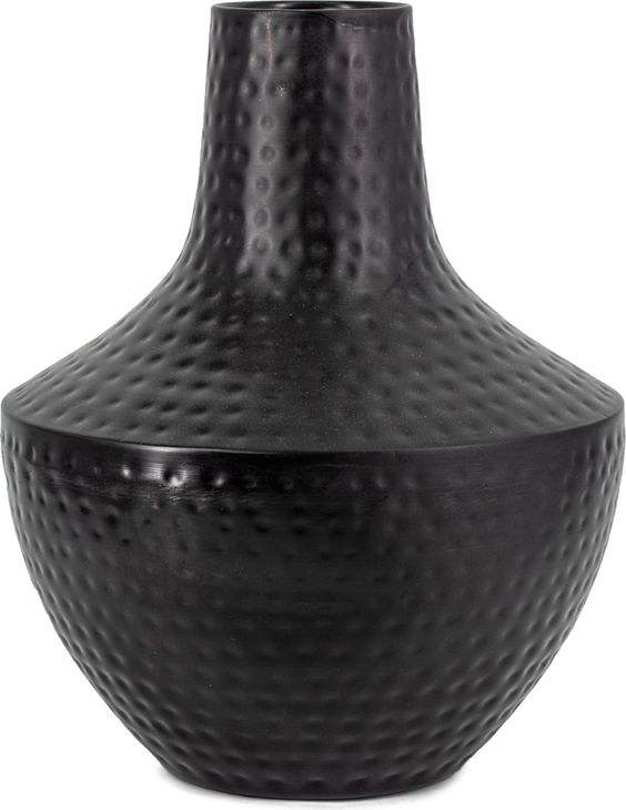 แจกันโลหะสีดำด้านแบบตอกลาย ขายส่งจากโรงงาน แจกันตกแต่งทนทานสำหรับใส่หญ้าแพมพัส เหมาะสำหรับตกแต่งสำนักงาน คาเฟ่ สไตล์โมเดิร์น